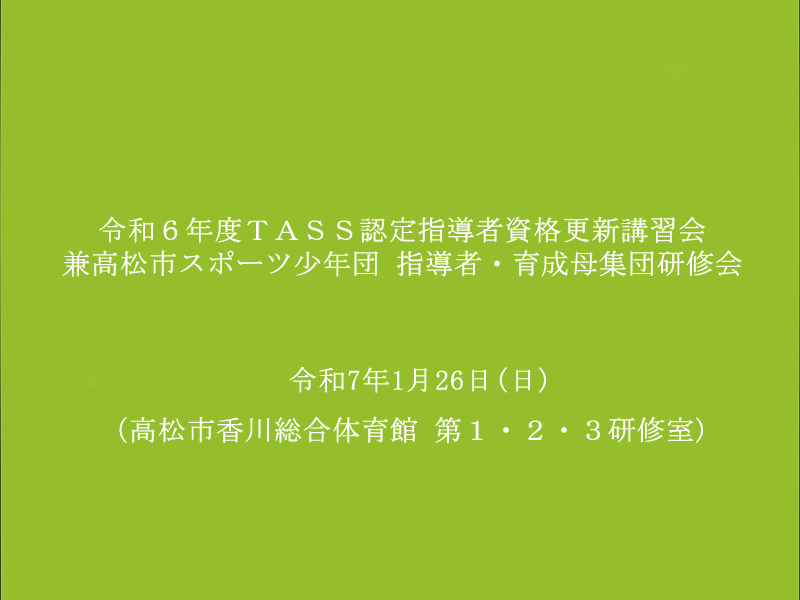 TASS認定指導者資格更新講習会兼高松市スポーツ少年団指導者・育成母集団研修会